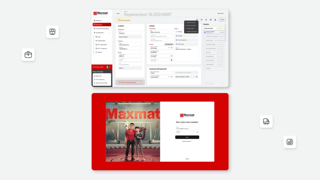 LOAD started by engaging key stakeholders through interviews to capture pain points, goals, and functional requirements. This was followed by a comprehensive system assessment – including architectural and security evaluations – of Maxmat’s legacy platforms. We developed Software Requirements Specifications (SRS) and detailed user journey maps to support decision-making. When required, reverse engineering techniques were applied to understand legacy systems thoroughly and define migration strategies. Among the key deliverables were two redesigned applications developed from scratch: